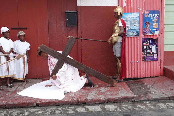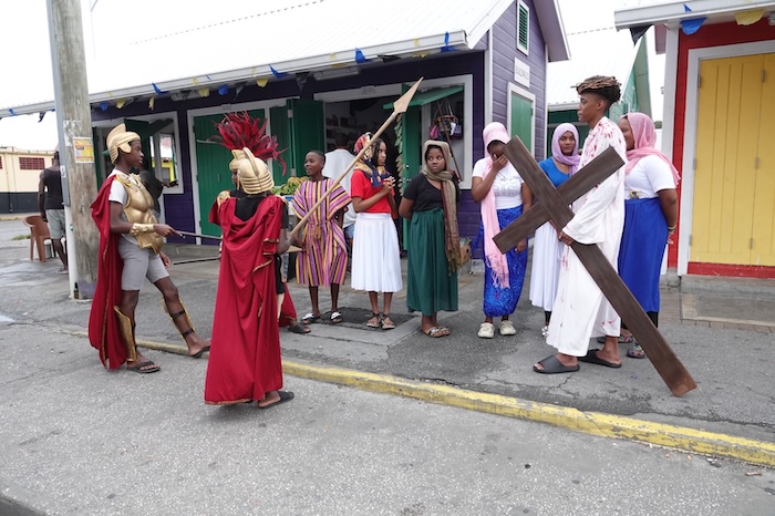 At sunrise yesterday, members of the Catholic Community of St. PatricK’s Cathedral gathered to start the annual Good Friday procession through the streets of Bridgetown to depict the 14 Stations of the Cross, a reenactment of Jesus Christ final moments before his crucifixion.