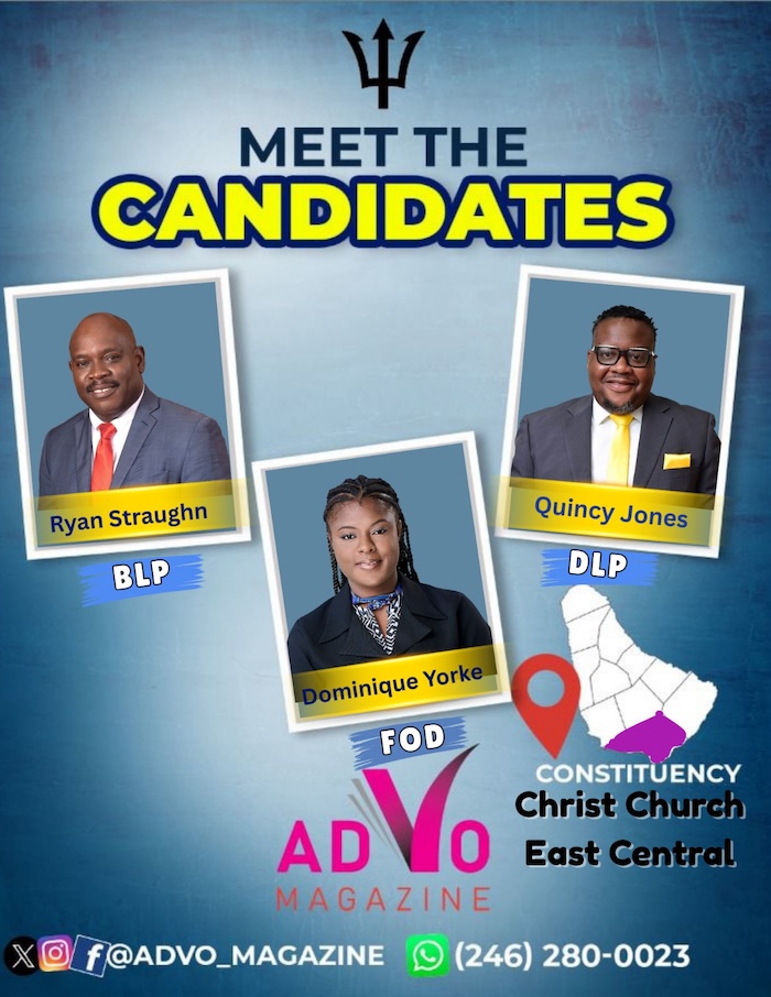 Featured today are Shantal Munroe Knight of the Barbados Labour Party and Corey Greenidge of the Democratic Labour Party for the constituency Christ Church South and Ryan Straughn for the Barbados Labour Party, Quincy Jones of the Democratic Labour Party and Dominique Yorke for Friends of Democracy for the constituency Christ Church East Central.