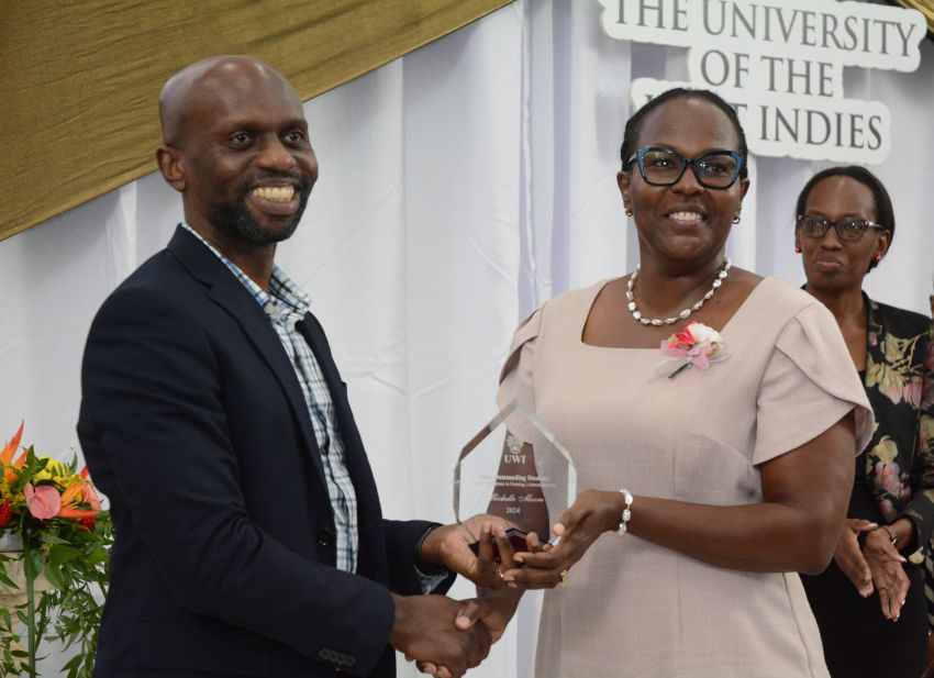 Caption: Deputy Principal of the University of the West Indies, Cave Hill Campus, Dr. Winston Moore, presenting Kerry-Ann Pope with the award for Most Outstanding Student in The UWI’s Postgraduate Diploma in Paediatric Nursing.